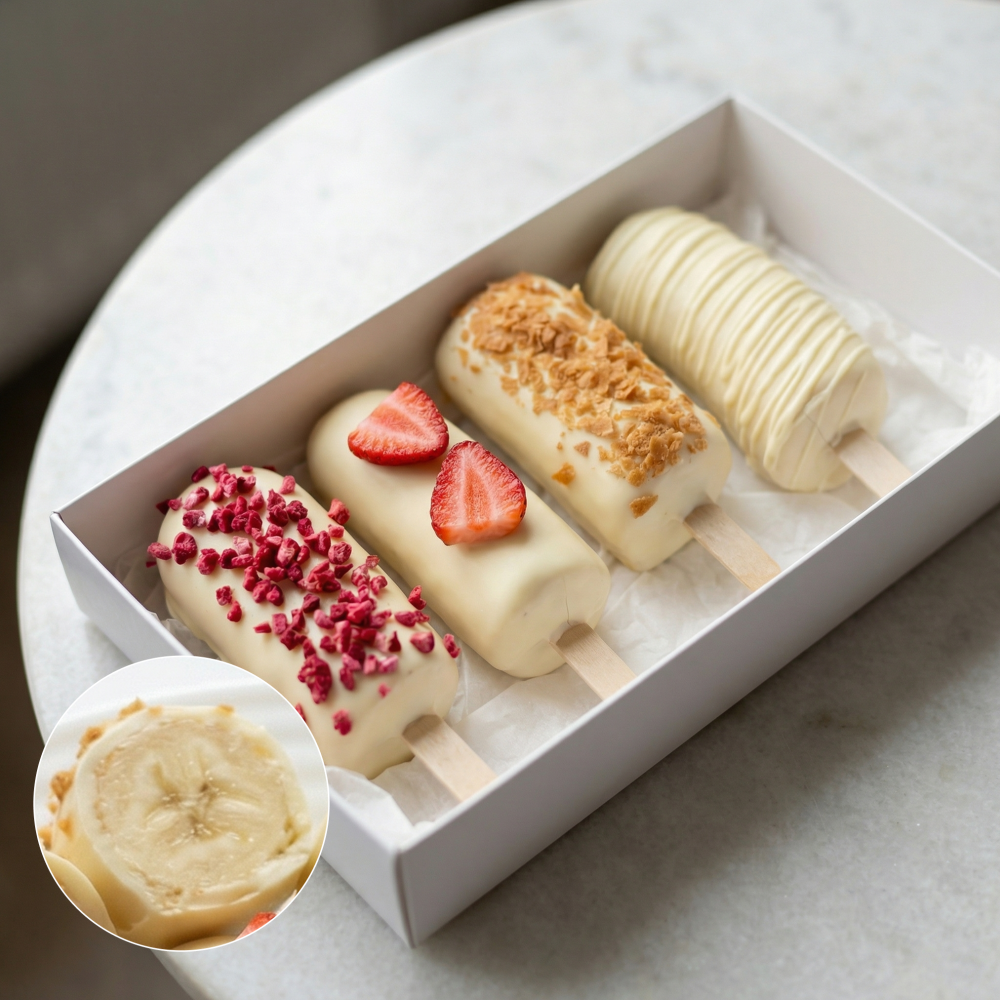 Фирменная открытка-инструкция по хранению — в подарок. Коробочка бананов в шоколаде — отличный подарок бабушке, маме, любимой женщине, жене, подруге, сестре, друзьям и коллеге.