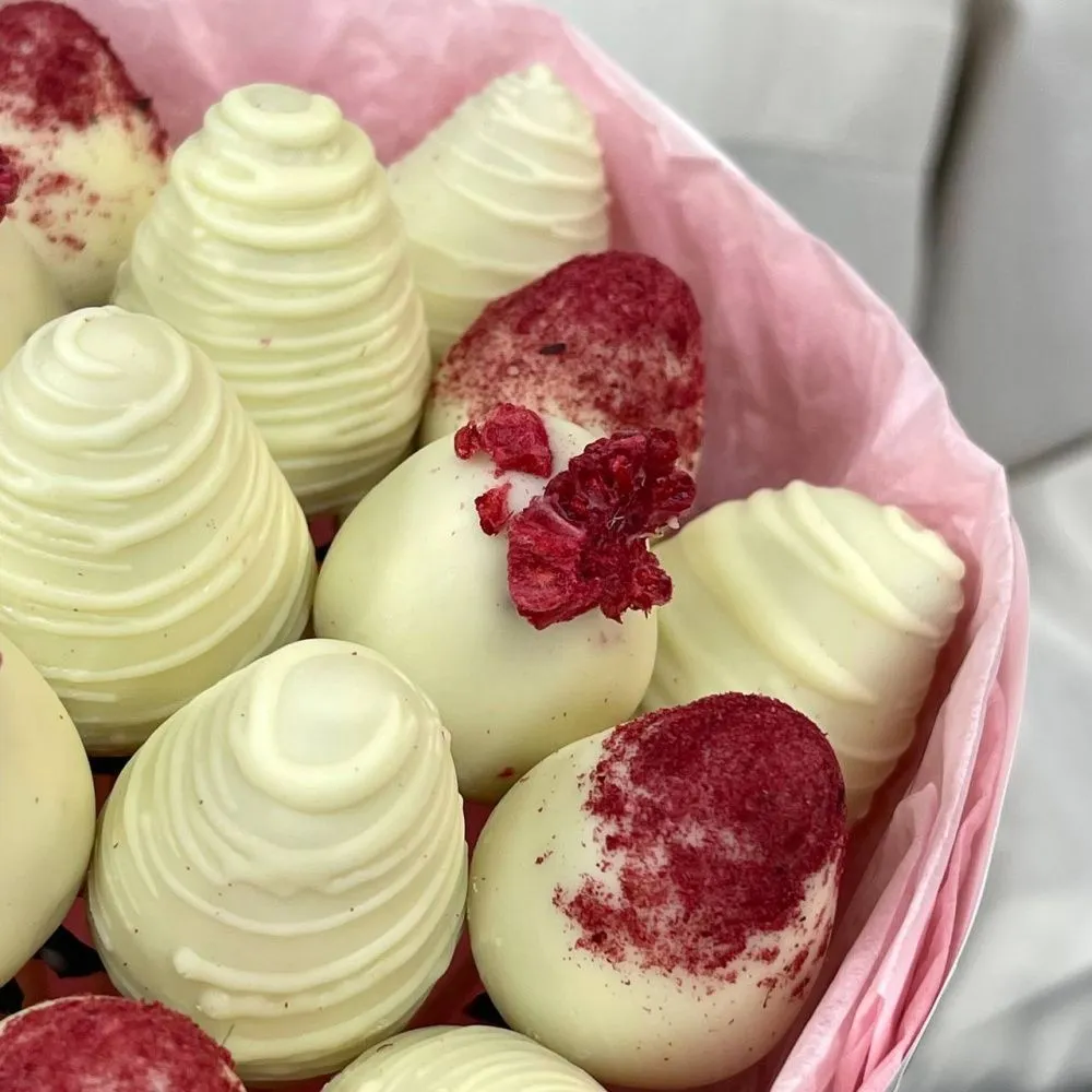 Мы собираем клубничные букеты по весу, а не по штукам. Количество, форма и размер ягод могут отличаться — ведь каждая ягода уникальна.
