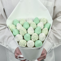 *Обратите внимание: изображение в карточке товара носит иллюстративный характер — реальный букет может незначительно отличаться от фото (например, по размеру клубники, форме и сборке). Точные размеры букета указаны в карточке товара.