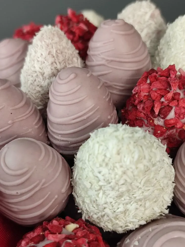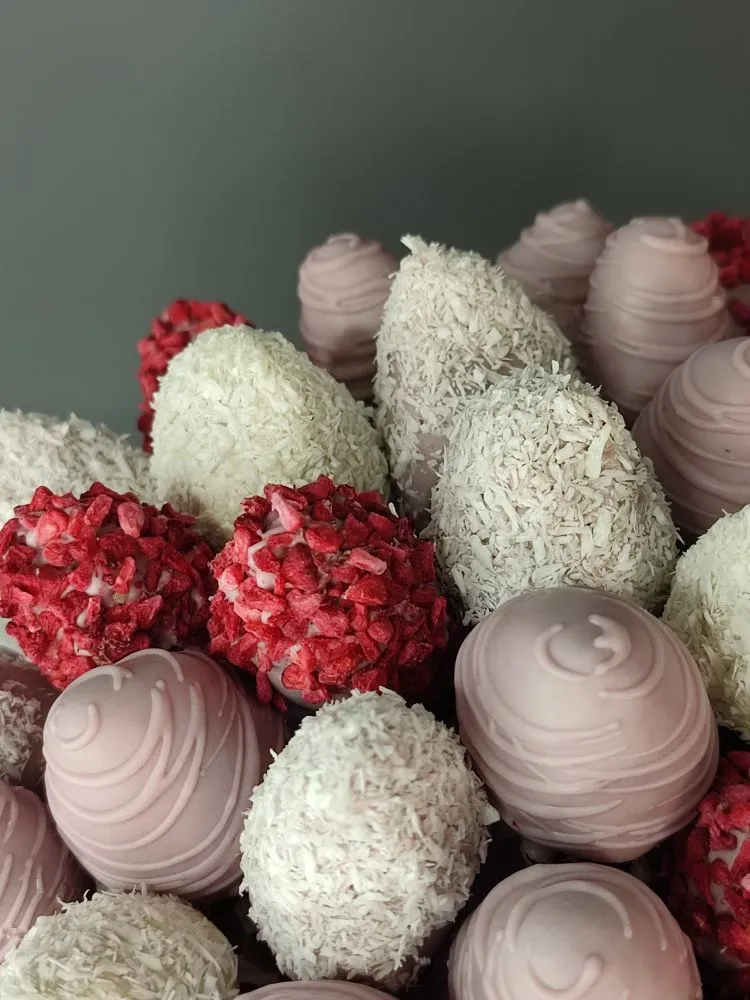 Мы собираем клубничные букеты по весу, а не по штукам. Количество, форма и размер ягод могут отличаться — ведь каждая ягода уникальна.