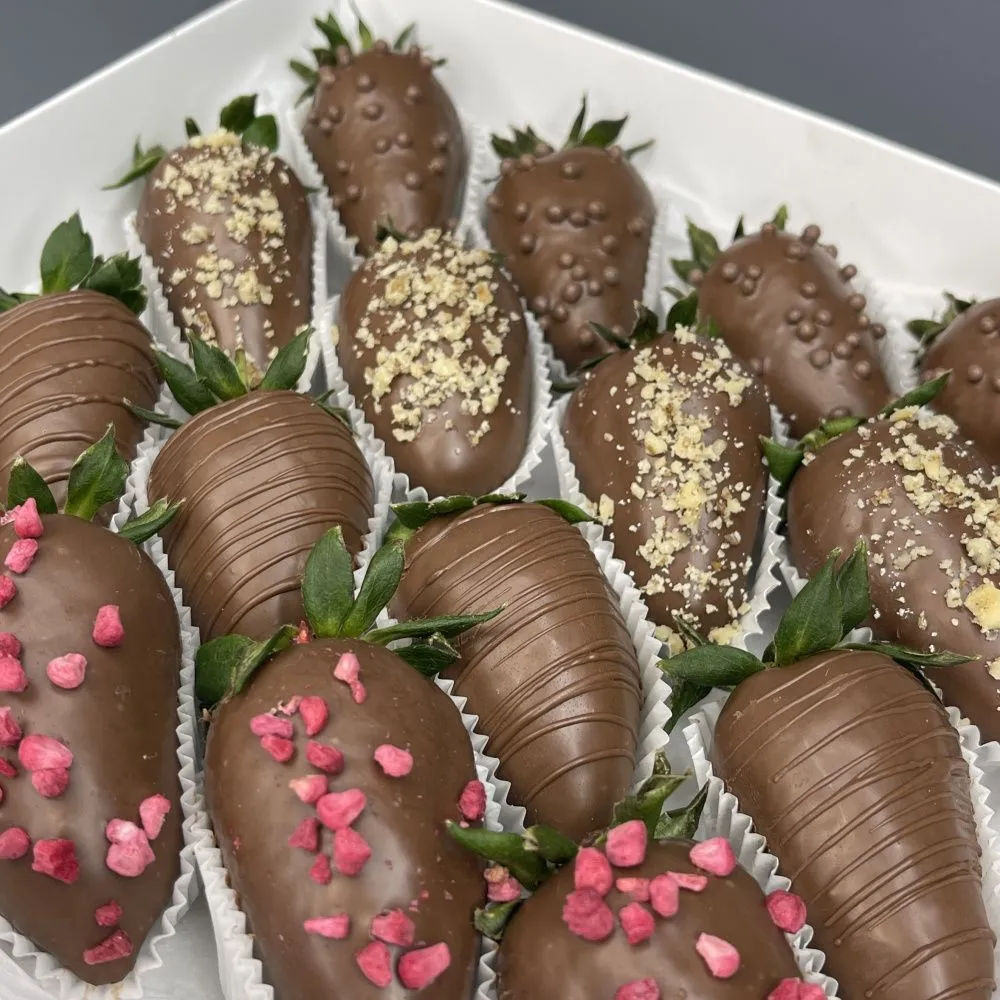 Мы собираем клубничные букеты по весу, а не по штукам. Количество, форма и размер ягод могут отличаться — ведь каждая ягода уникальна.