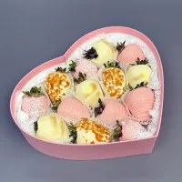 Мы собираем клубничные букеты по весу, а не по штукам. Количество, форма и размер ягод могут отличаться — ведь каждая ягода уникальна.