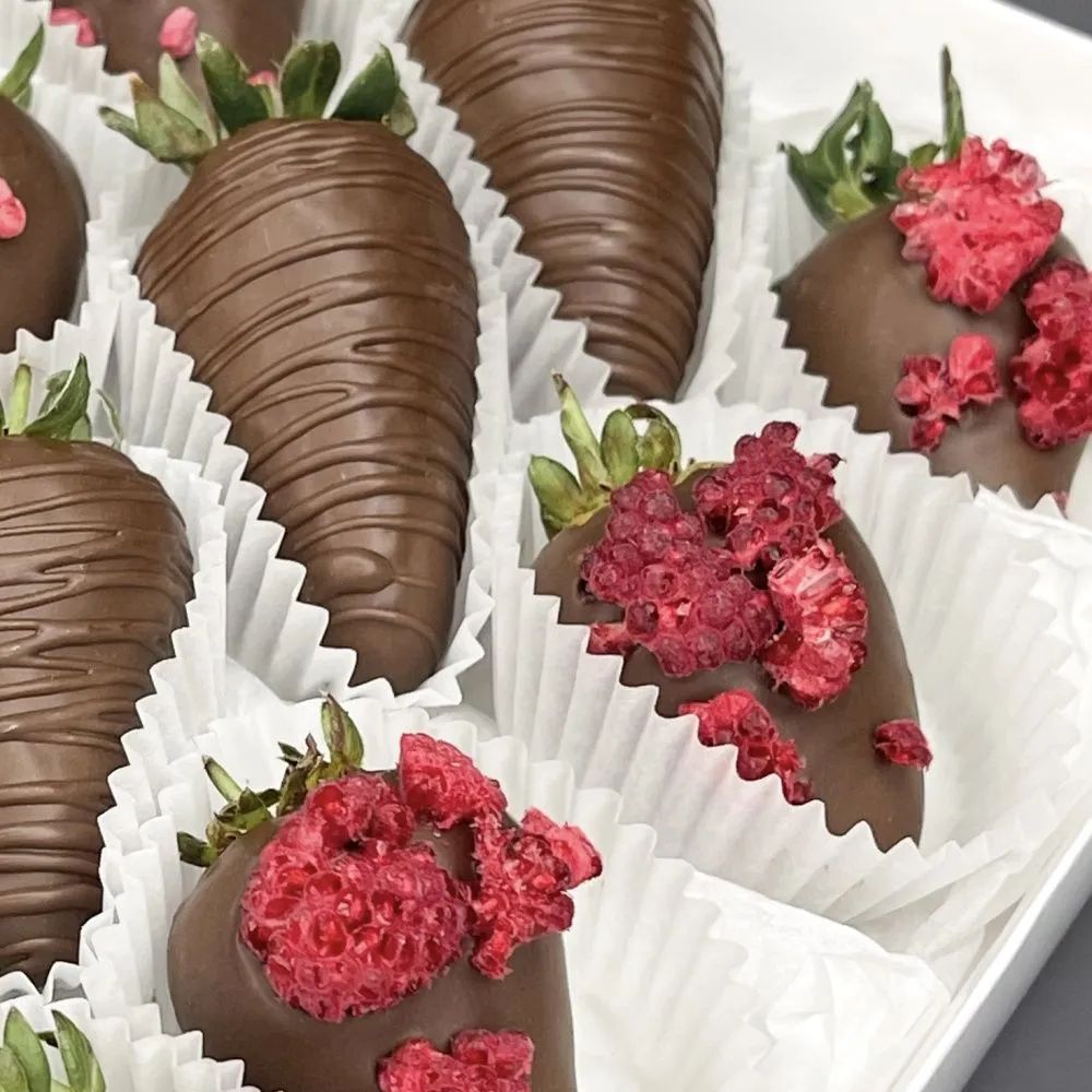 Мы собираем клубничные букеты по весу, а не по штукам. Количество, форма и размер ягод могут отличаться — ведь каждая ягода уникальна.