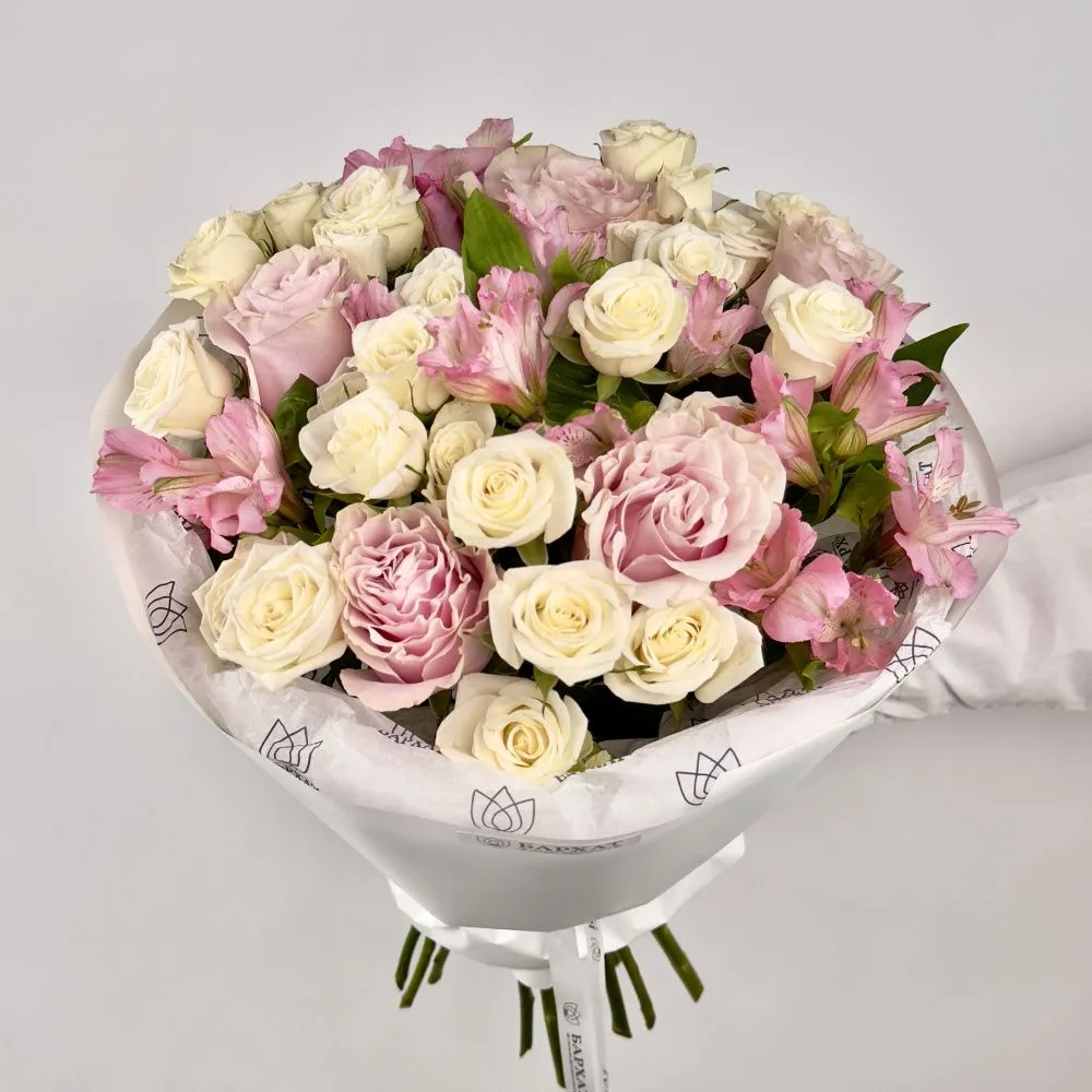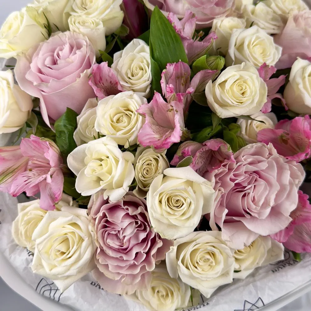 Мы стараемся собрать букет максимально похожим на фото. Возможны небольшие отличия в оттенках.