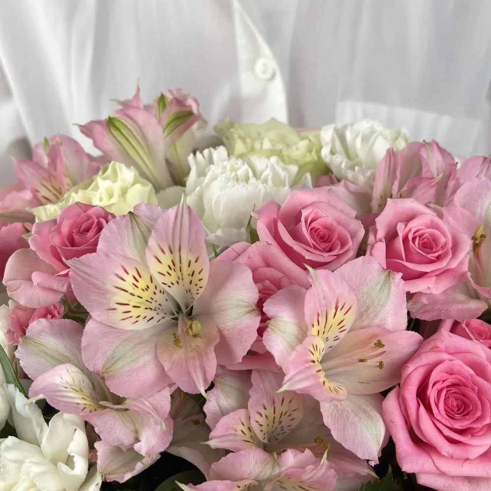 Мы стараемся собрать букет максимально похожим на фото. Возможны небольшие отличия в оттенках.