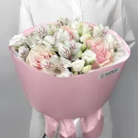 Мы стараемся собрать букет максимально похожим на фото. Возможны небольшие отличия в оттенках.