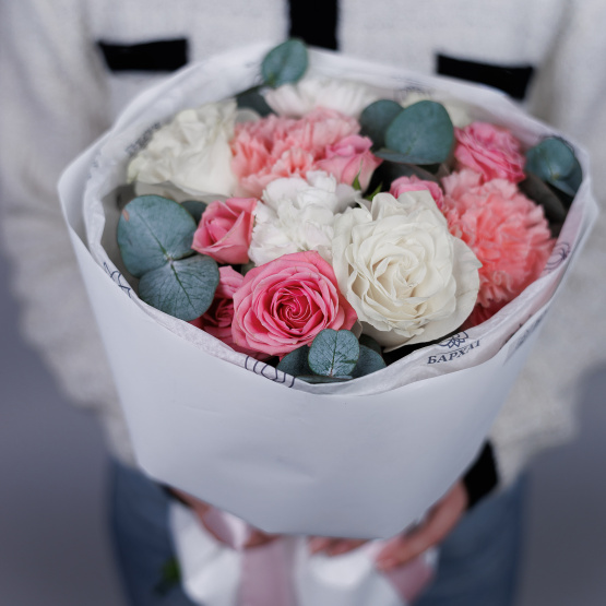 Мы стараемся собрать букет максимально похожим на фото. Возможны небольшие отличия в оттенках.