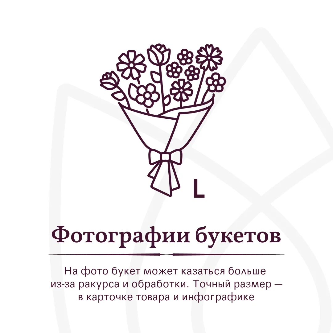 *Обратите внимание: изображение в карточке товара носит иллюстративный характер — реальный букет может незначительно отличаться от фото (например, по оттенкам цветов, форме и сборке). Точные размеры букета указаны в карточке товара.