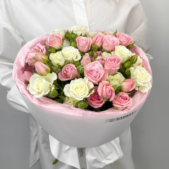 Сорт и оттенок могут незначительно отличаться — если нужных цветов не будет, флорист подберет подходящую замену.