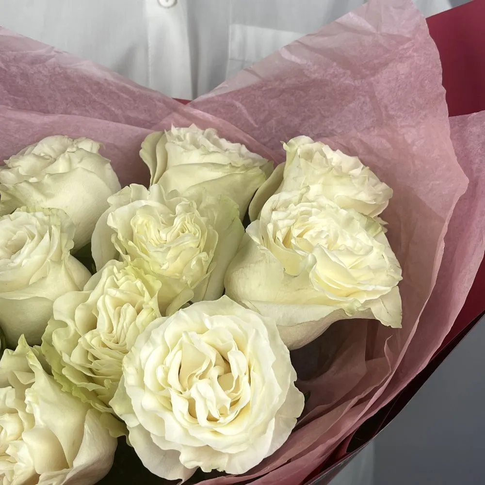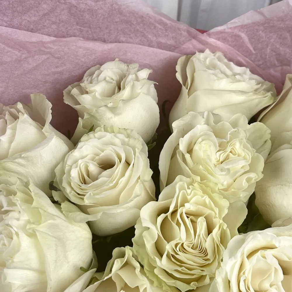 Букет из 15 белых роз под ленту